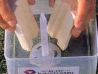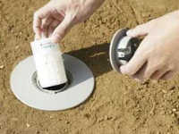 シロアリの存在を確認したら、餌のように調製した薬剤が入ったベイトカップを設置。