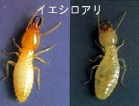 シロアリ目(等翅目)は普通、シロアリ、ノコギリシロアリ、ミゾガシラシロアリ、シュウカクシロアリ、オオシロアリ、レイビシロアリ、ムカシシロアリの7科に分けられます。日本には、シロアリ、ミゾガシラシロアリ、オオシロアリ、レイビシロアリの4科が棲息しています。この中で、日本に広く分布し家屋に被害を及ぼす代表的な種は、ミゾガシラシロアリ科に属するイエシロアリとヤマトシロアリ。イエシロアリは世界中のシロアリの中でももっとも加害の激しい種といわれ、建物全体に加害します。ヤマトシロアリは、比較的低温にも耐えるため、北は北海道旭川まで分布している建造物の大害虫です。