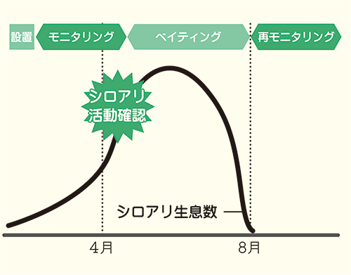 習性を利用した新発想の防除工法巣ごと退治するシステムです。